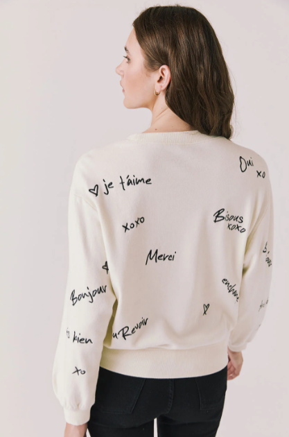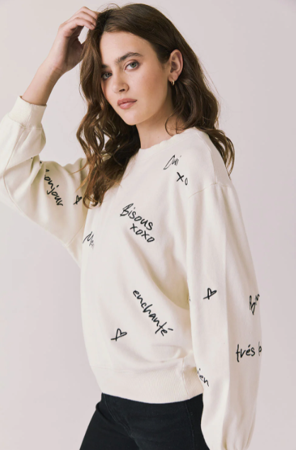 Elevate the classic white long tee with the French Scripts Long Sleeve, featuring petite French handwritten-style script that adds a charming, European flair.