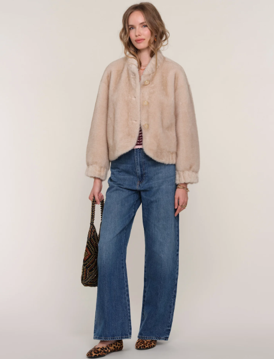 The Gellar Jacket is a super special piece this season. Made from a fluffy, faux fur it has an elastic cuff and hem. Wear it over your favorite mini dress, or with jeans and a tee, for an effortlessly, cool look.