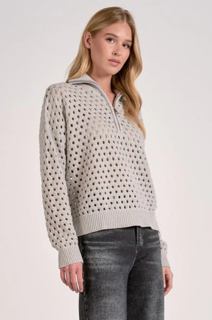 The Arabella Sweater offers chunky knit texture and a sporty half-zip neckline for easy, laid-back layering. Designed to throw over tanks or tees, it’s perfect for casual fall days and cool nights.