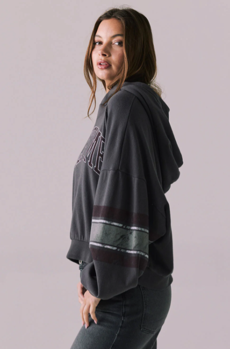 The Halftime Hoodie in True Black delivers bold chest graphics and plush fleece softness in a pullover silhouette built for laid-back layers.
