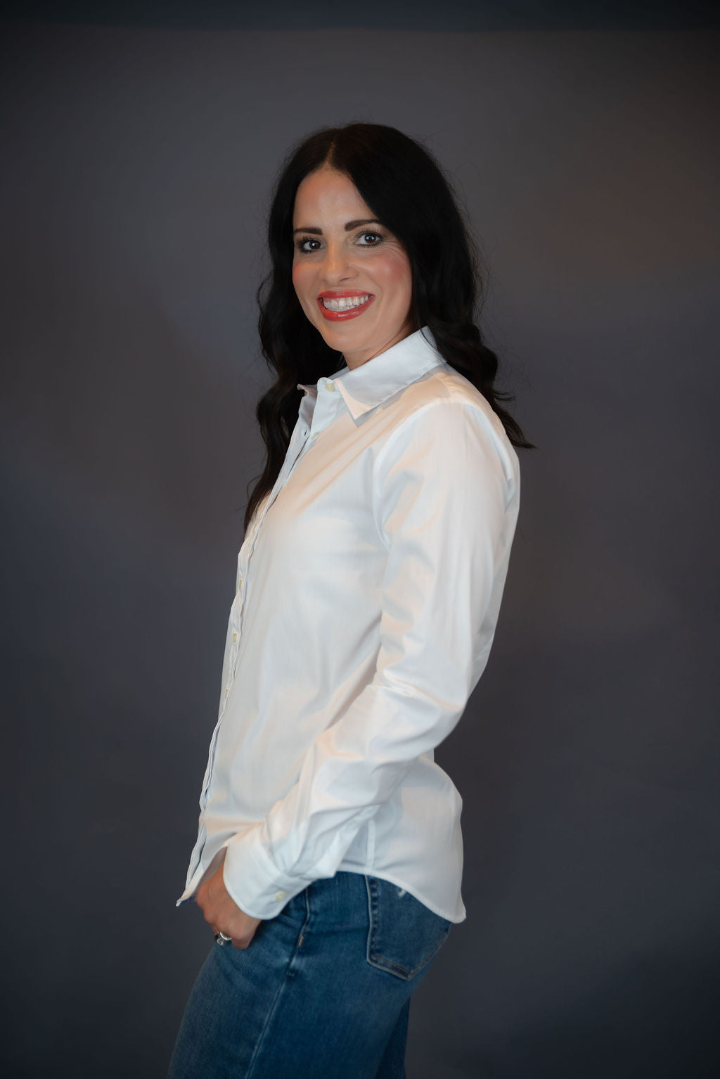 Rochelle Behrens reimagined how shirts should fit and feel. Our patented No Gape® button technology, seamlessly designed into every shirt and shirtdress we design, eliminates blouse gape. Finally say bye bye blouse gape, hello The Shirt.