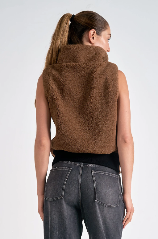Wrap yourself in warmth with the Vancouver vest. This zip-up sherpa piece boasts practical pockets and bold stripe details, creating a functional yet stylish layer for cool weather adventures.